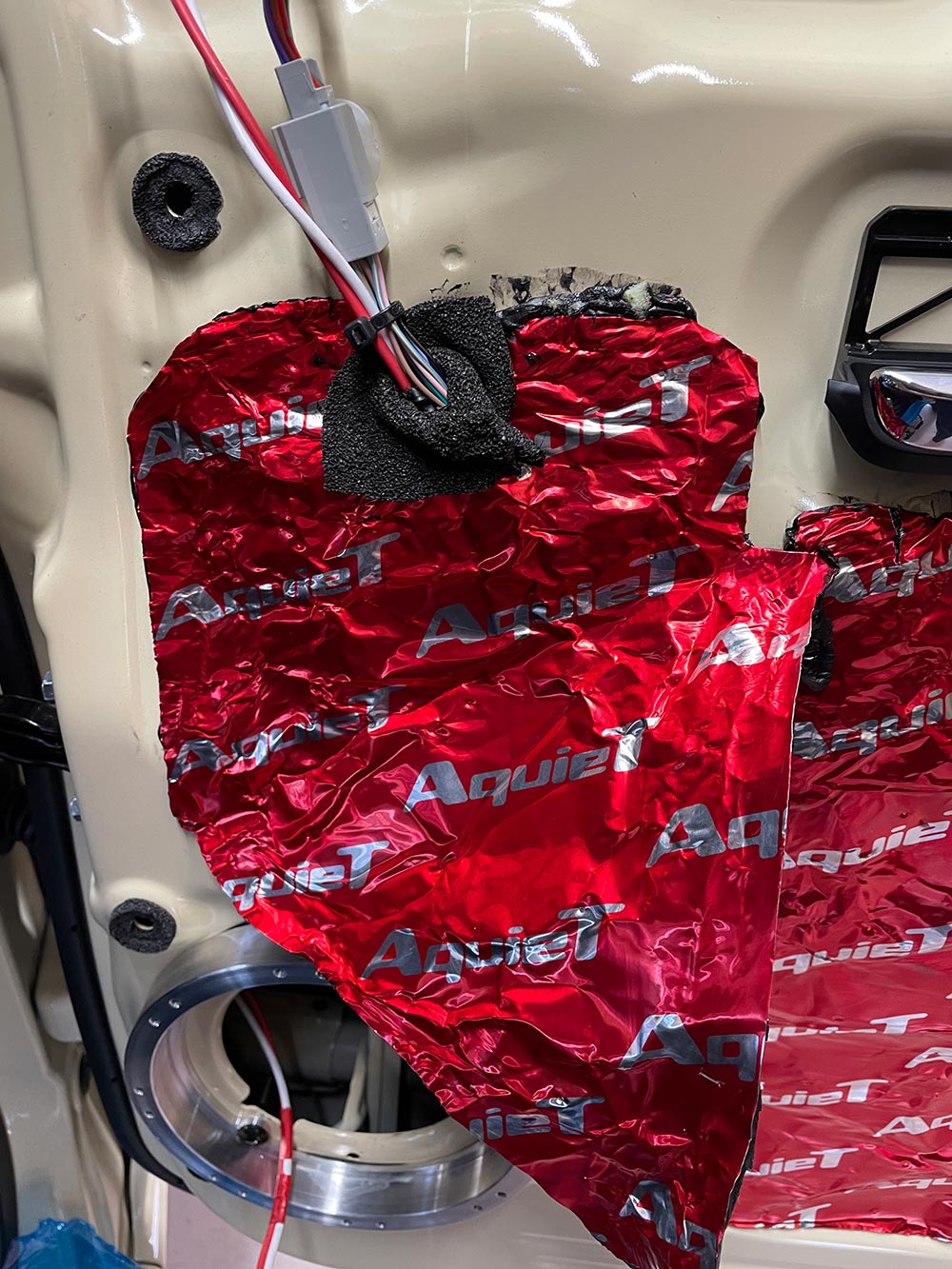今回のリコールのハーネス交換において、当店作業した車においてはデッドニングを剥がした際の応急処置とスピーカーケーブルについて諸注意が御座います。
