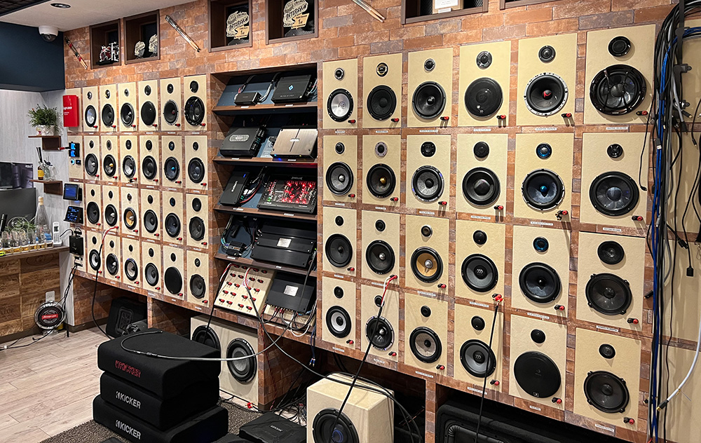 日本最大級のデモボードにて、皆さんのスマホの再生からDAPやナビまで多彩な組み合わせが出来て8種類のアンプ、