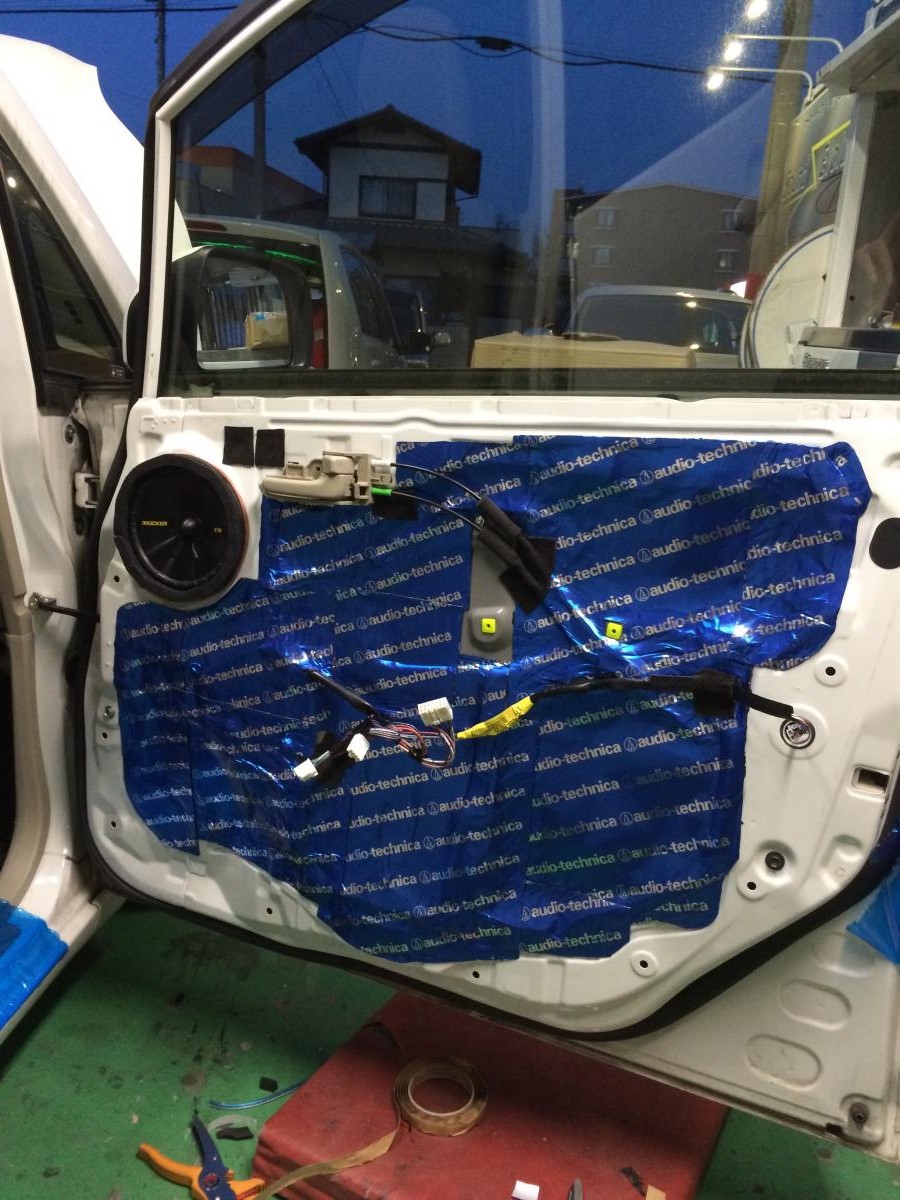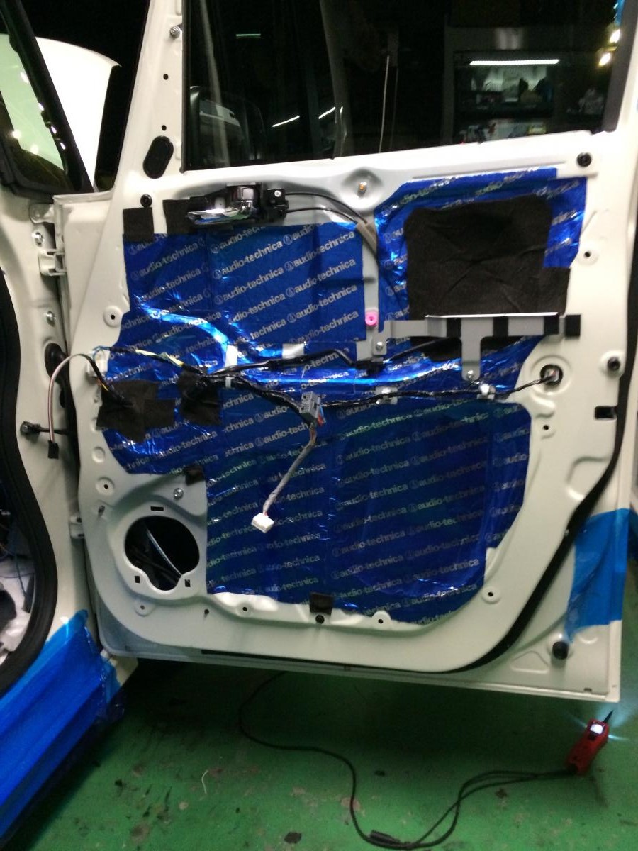 オリジナルデッドニングステージ210年以上の進化をした絶対の自信がある防振。写真のように、塗装面の裏にに非磁性体のアルミの鋼材を取り付けその上からさらにびっしりと防振します。ドアの閉めた感触、高級車並みです。もちろん効果というより、別物です。