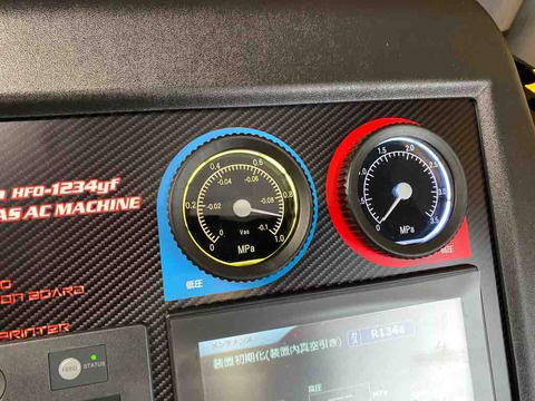 何がグレードアップしたのかといいますと、写真を見れば分かるとおり、最近の新車に多いHFO-1234yfのガスに対応したマシンなのです!1台で従来のR134aガスと新冷媒R1234yfガスのどちらにも対応出来る、カーエアコンサービスステーション。
