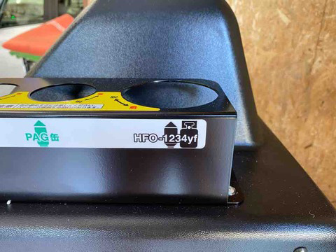 最近新車ご購入したお客様はボンネットを開けてガスの種類を見て下さい。1234と書いてあれば専用の機械でないとメンテナンスができません。