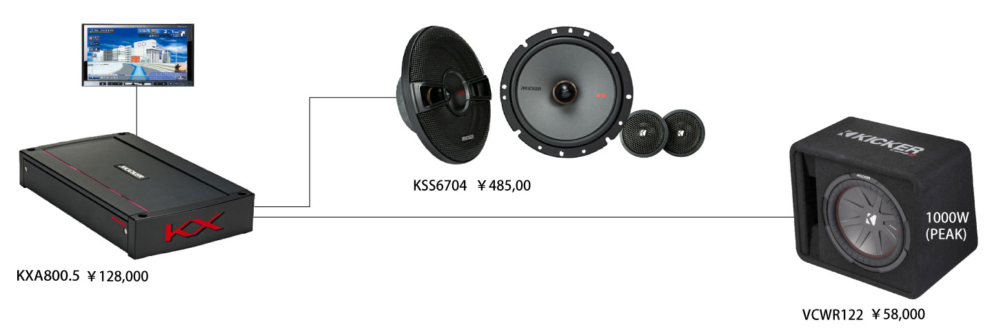 DSP内蔵の5chアンプ、同軸&セパレート供用で使えるスピーカー、KICKERの代名詞